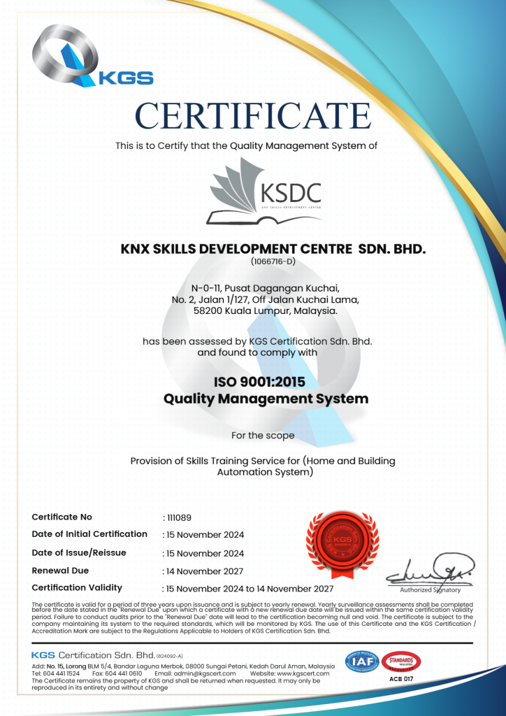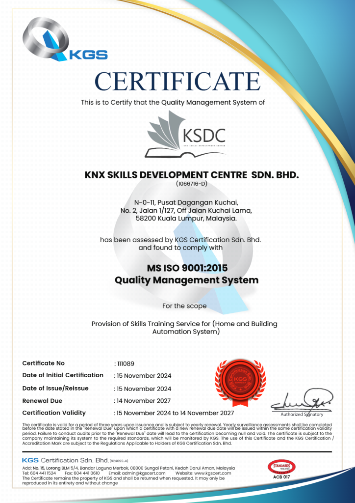Founded in November 2011, KNX Skills Development Centre Sdn. Bhd. (KDSC) was established by two experts with extensive experience in home, building, and industrial automation, with a vision to provide knowledge to underprivileged students.